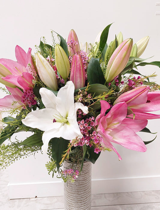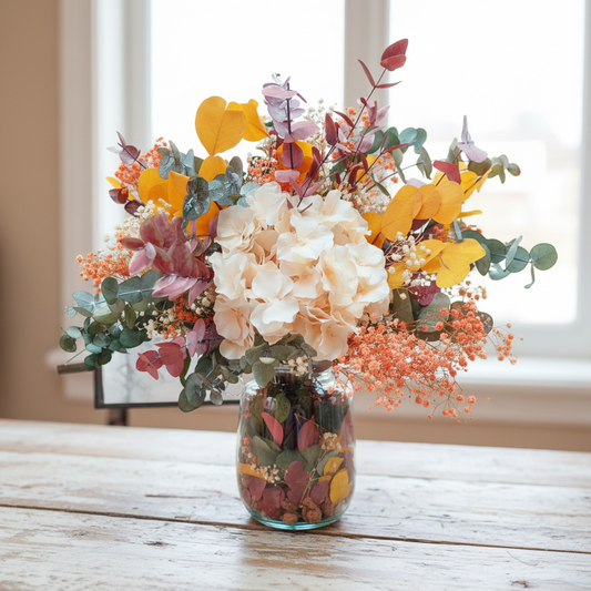 BOUQUET CON JARRÓN DE CRISTAL FELICIDAD