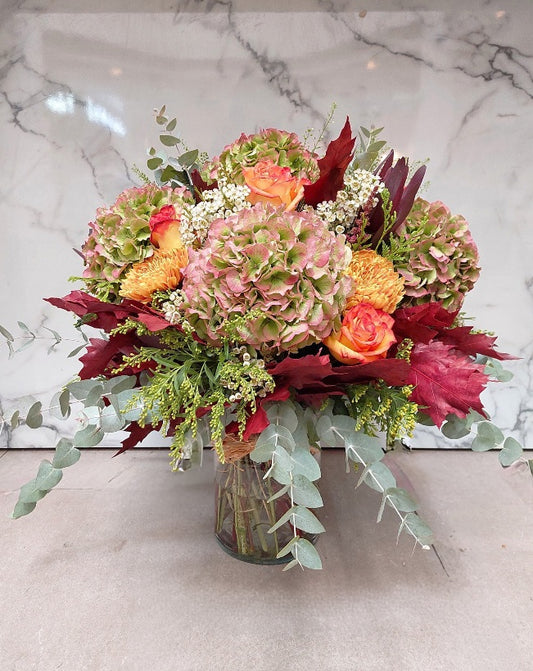 BOUQUET CON JARRÓN DE CRISTAL FELICIDAD