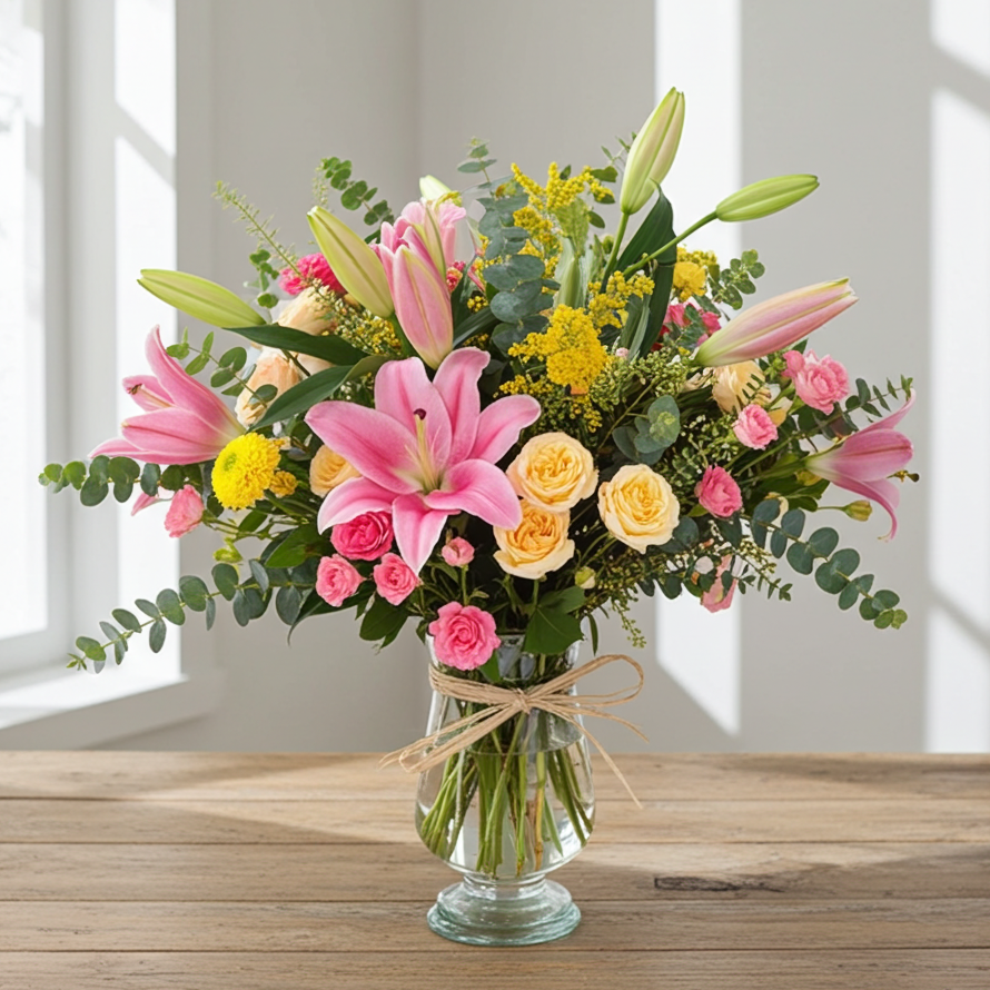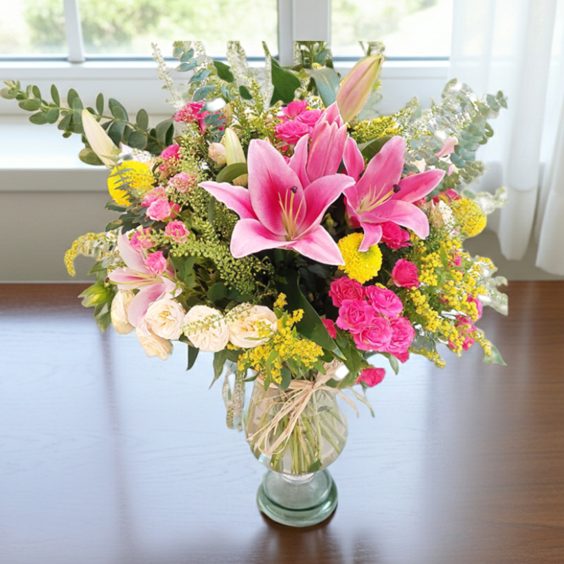 Ramo con flores delux cuidadosamente seleccionados por nuestros maestros floristas. El ramo contiene flores variadas con olor, verdes variados y flores coloridas combinadas con mucho gusto. ¡Para alguien muy especial!